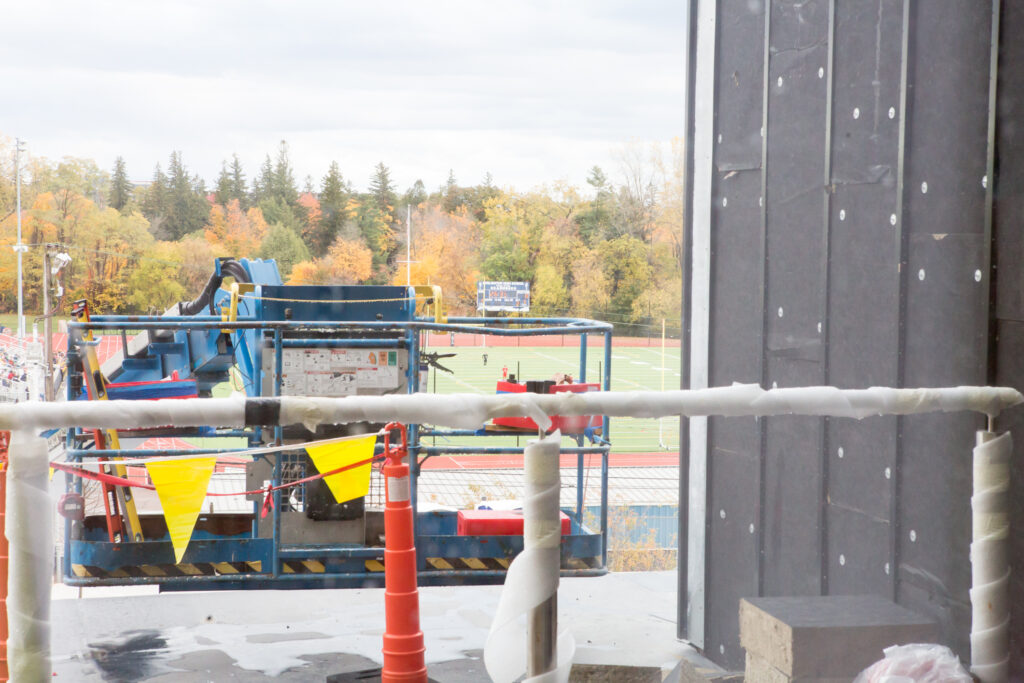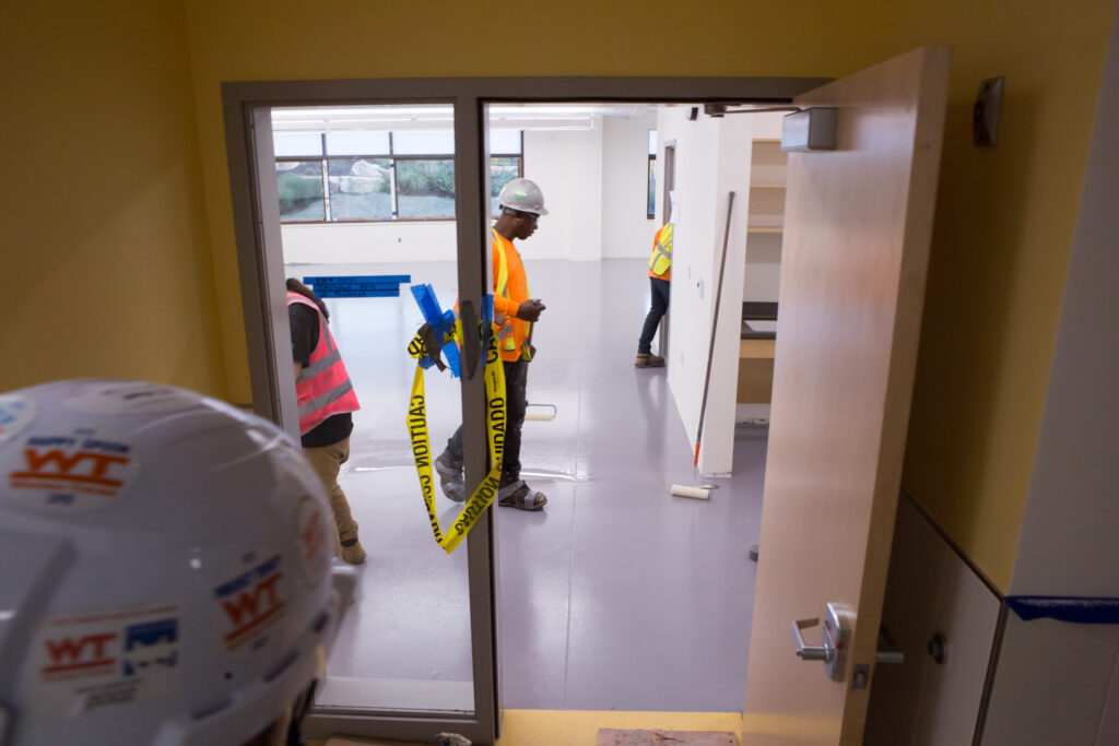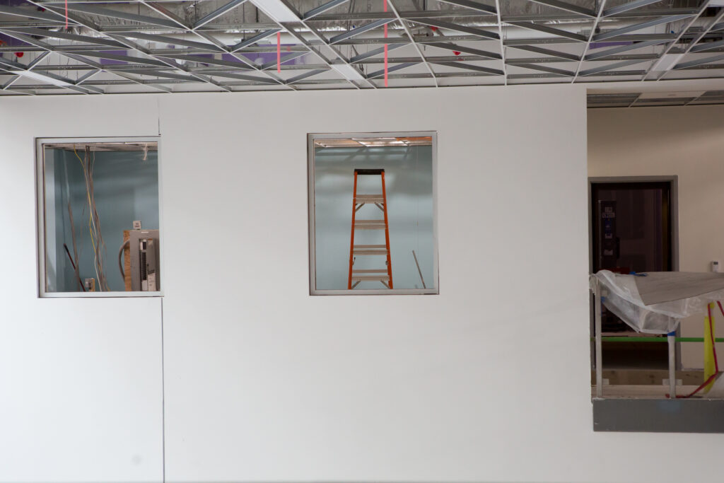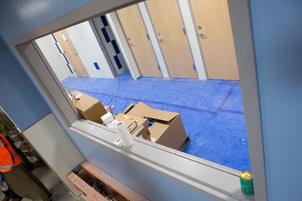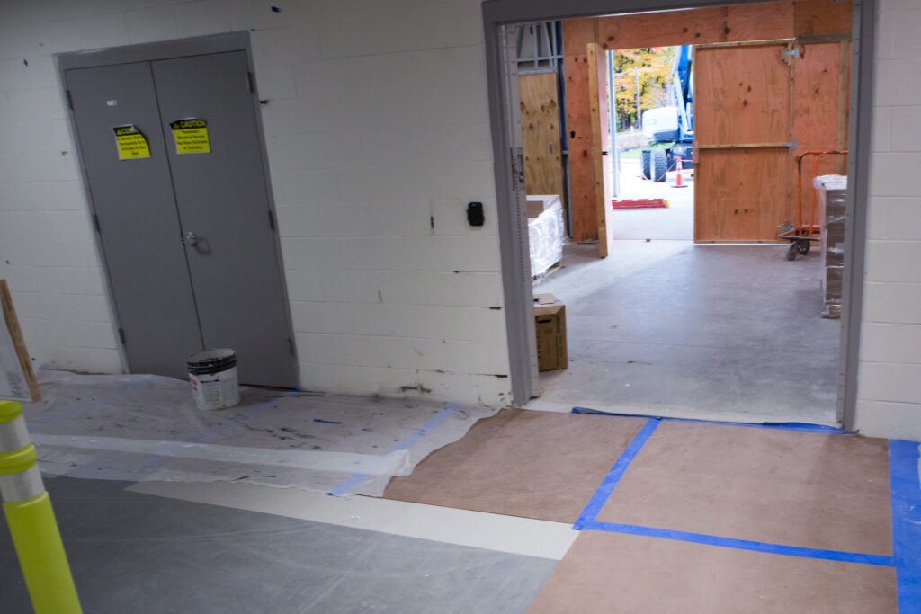 Flooring – The gym floors and other specialty floor installations have started. We put our COVID collection of large dehumidifiers to good use to bring the moisture content of the concrete floors into the proper range for the flooring installation.