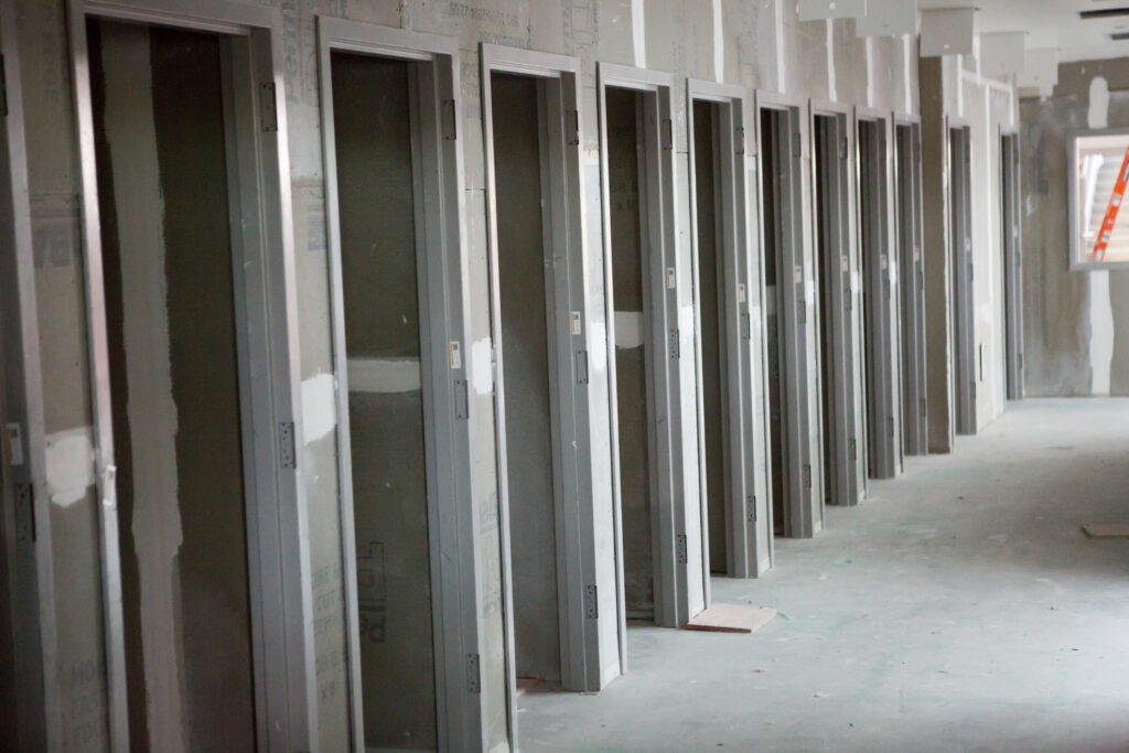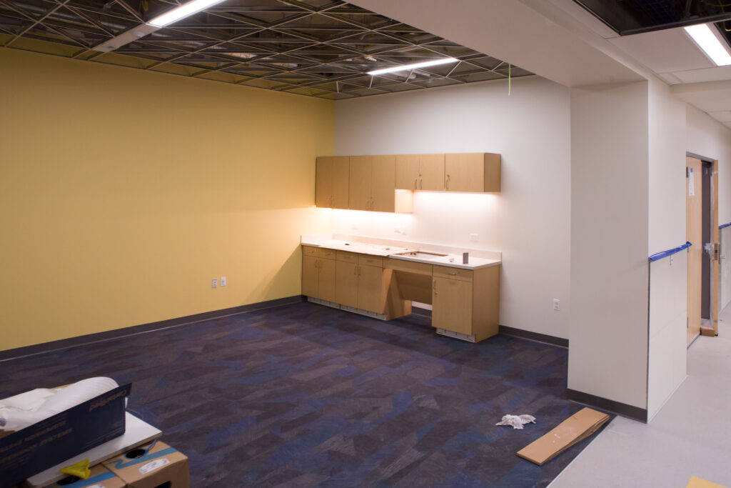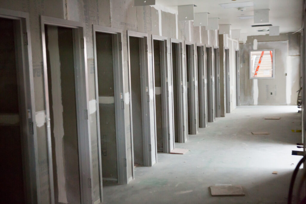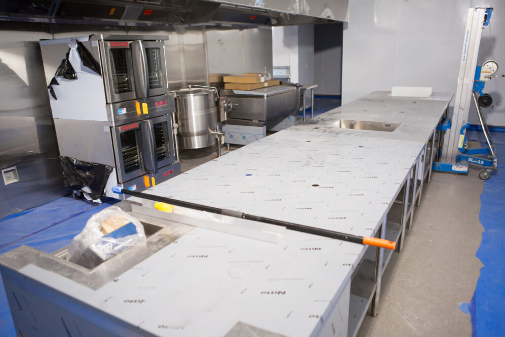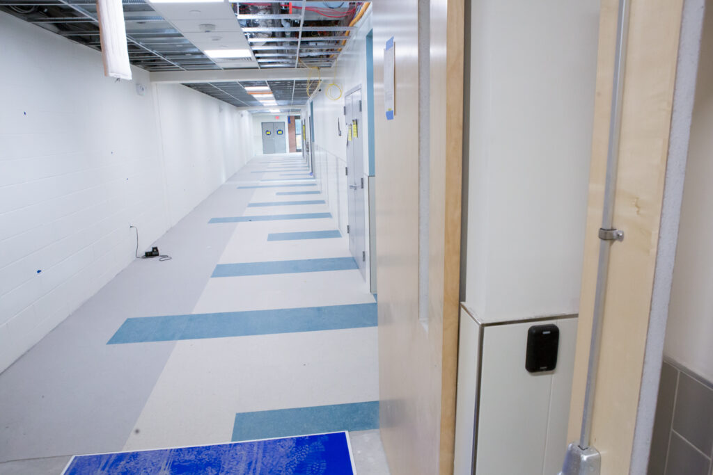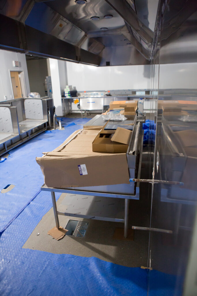 Flooring – The gym floors and other specialty floor installations have started. We put our COVID collection of large dehumidifiers to good use to bring the moisture content of the concrete floors into the proper range for the flooring installation.